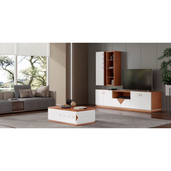 Estante de Sala Esperança composta por Móvel TV de 1,15cm e 2 módulos verticais unidos por uma prateleira.