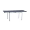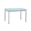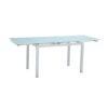 Mesa de vidro extensível Toulouse. Disponível em 3 cores de vidro: Branco, Preto e Cinza. Pé com pintura cinza.