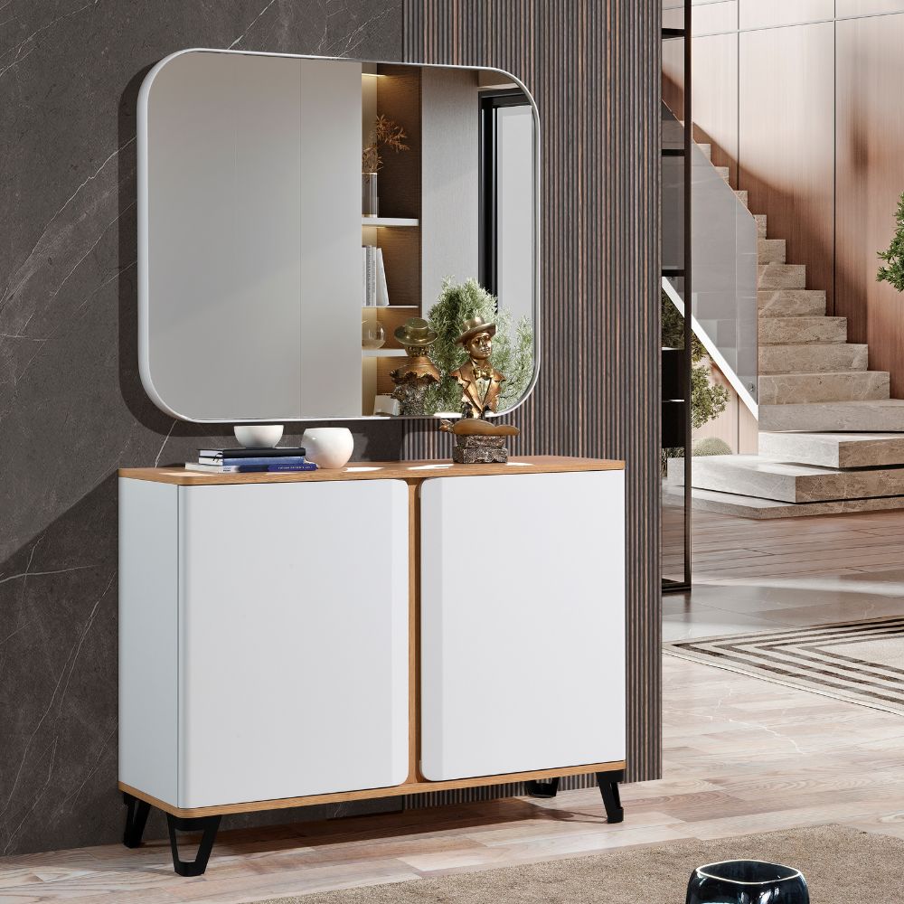 Sapateira Valentina Lacada Branco Névoa com Carvalho (Nature). Interior com 3 Prateleiras.